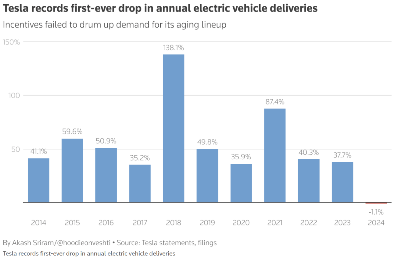 Tesla missed the annual delivery forecast (by a small margin) for the first time. At the same time, Ford and GM reported the best annual sales since 2019.