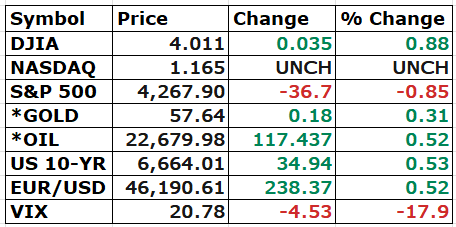 Good Afternoon. Positive week for the markets, with some noise on tariff-related geopolitical news. As expected, the earnings season kicked off with strong earnings from most banks.