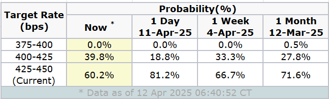 Target Rate Probabilities for May 7th FOMC Meeting: