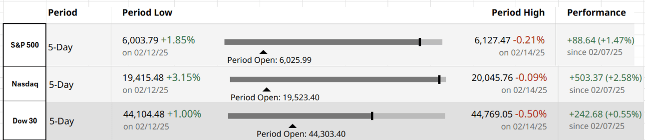 Good Afternoon. All significant indices returned positive returns for the week as markets moved on from the DeepSeek worries. Earnings continue to be strong with mixed macro data. Below are the key highlights of the week: