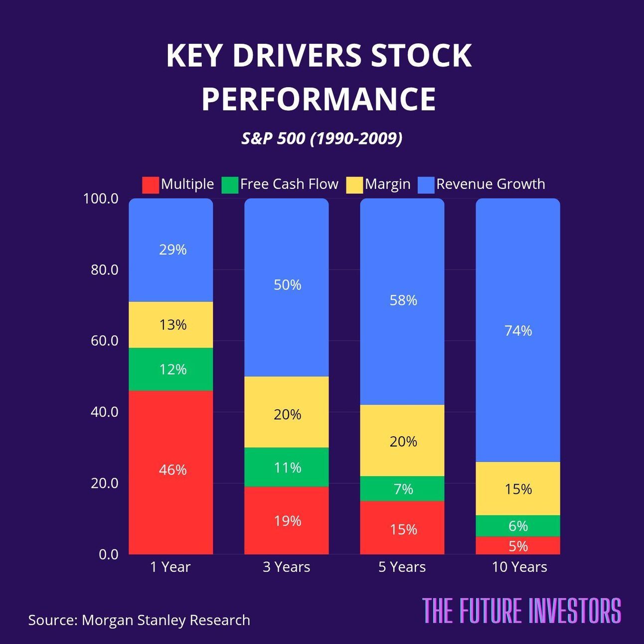 In the short term, stock returns are mainly driven by margin expansion due to short-term growth drivers or momentum. However, over the long term, the fundamentals matter the most. Revenue growth and margin are key to stock market returns.