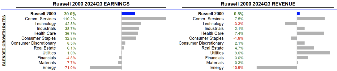 Below is a similar comparison for the Russell 2000. Until now, 605 Russell 2000 companies have reported earnings, i.e., ~30%. As most Russell 2000 companies are yet to report earnings, it will be too early to conclude, but compared to larger peer SP500, small caps are showing positive growth in both earnings and revenue. This also highlights that the smaller companies are late reporting results compared to larger companies. Q1 25 will be the first full quarter after the rate cuts, and hence, the late Q1 25 earnings (May/June) will confirm if the small caps are benefiting from the rate cuts or operating leverage due to the growing economy.