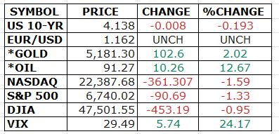 Good Afternoon. Bad week for markets, with all major indices recording losses amid geopolitical tensions, weak labor data, and concerns about private credit. Earnings continued to be strong.