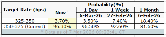 Target Rate Probabilities for March 18th FOMC Meeting: