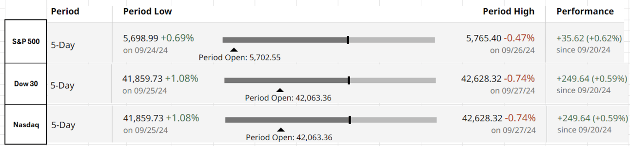 Good Afternoon. US markets closed positive for the week as the economic data was broadly in line with expectations, with inflation cooling and the economy doing fine. Stimulous from the Central Bank of China also helped lift global market sentiments.
