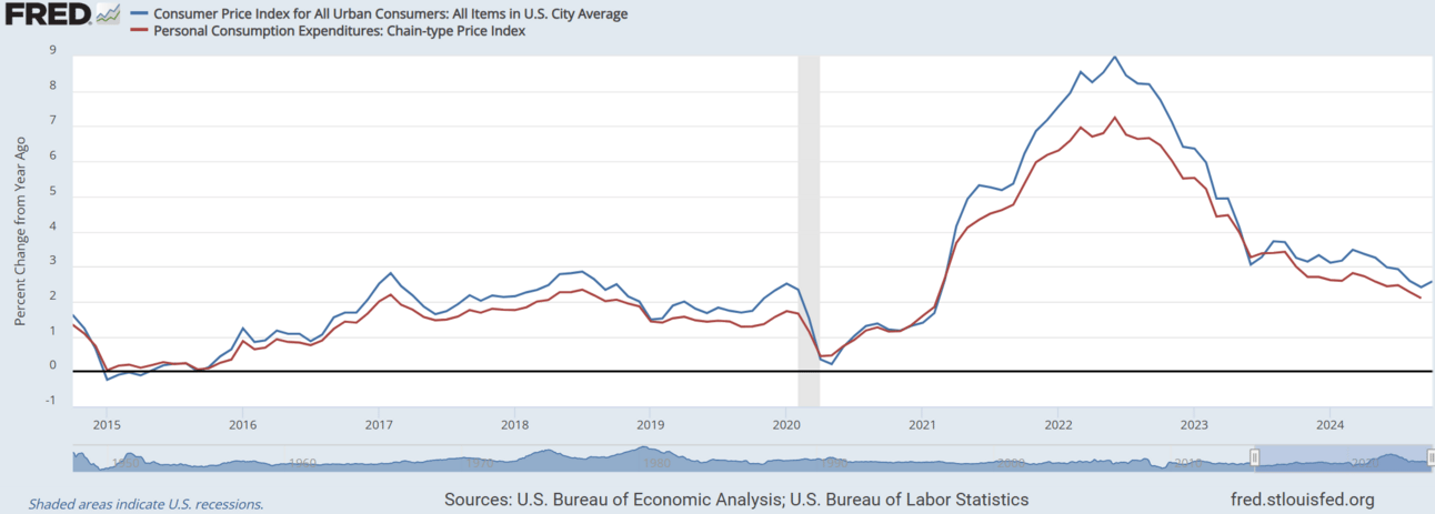 However, discrepancies between the two indexes can complicate the narrative, particularly over shorter timeframes. For example, in early 2024, the CPI signaled stagnation in inflation progress, whereas the PCE painted a more optimistic outlook. While both measures now trend in the same direction, the CPI reflects more persistent inflation pressures than the PCE.