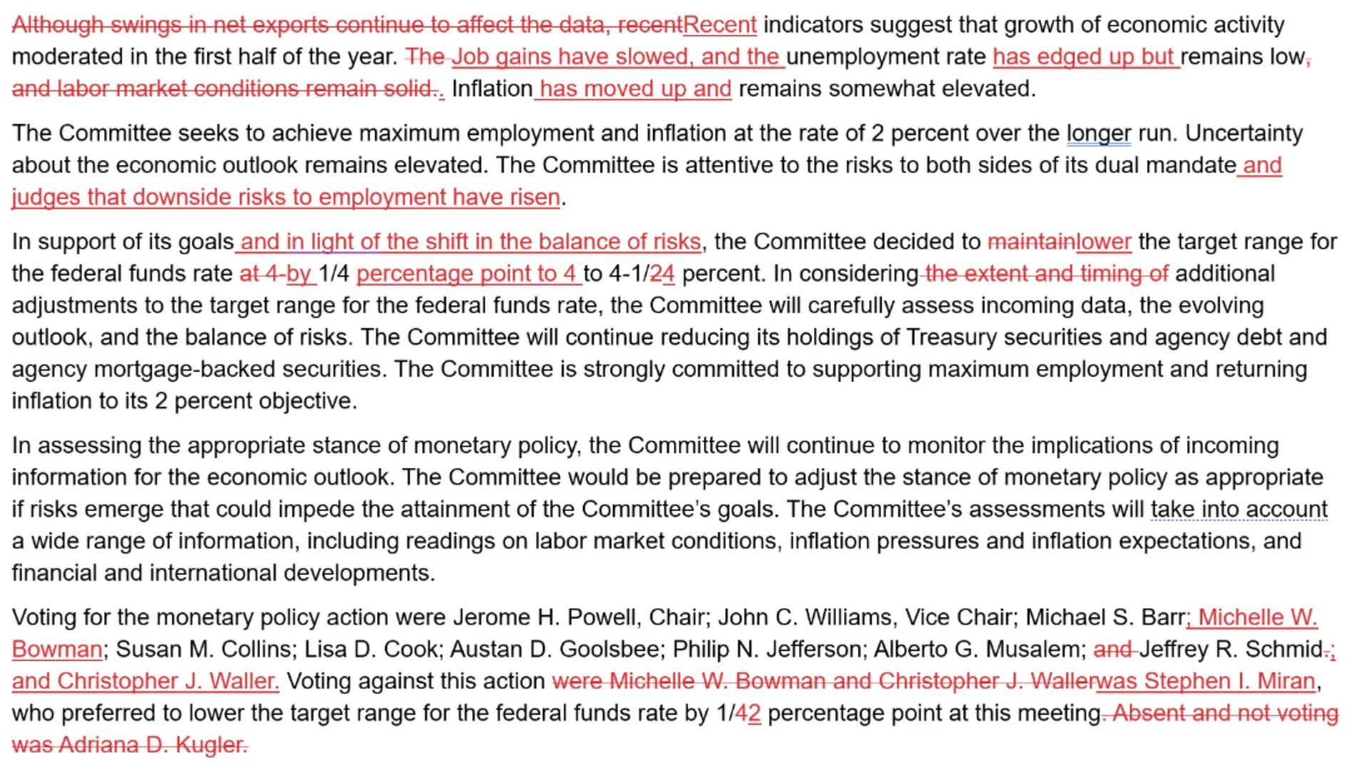 FOMC Statement Changes From Last Meeting: