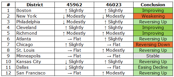 Housing: residential sales/construction/lending softened in most districts