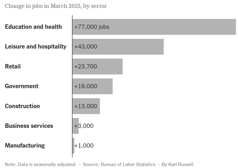 Overall, macro data this week was still decent. Non-farm payrolls came in much better than expected. Payroll employment rose by 228,000 in March, rebounding from weak January and February gains. The private sector drove the increase with 209,000 jobs, while the government added 19,000. Federal employment fell by 4,000, following an 11,000 drop in February.